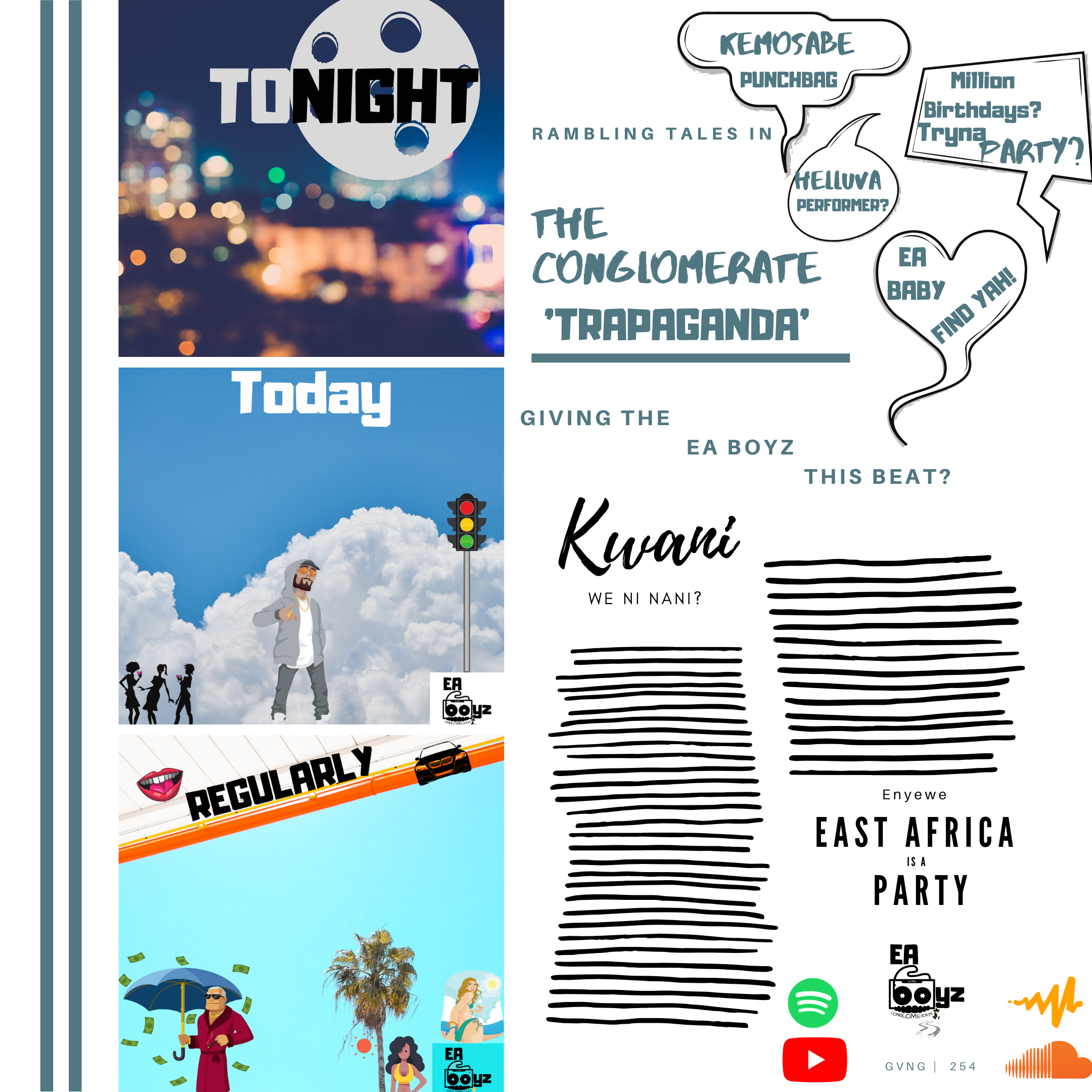 EA GVNG: A young versatile quintessential group from the heart of East Africa with a dynamic new-age urban music feel. GV TAYY, GV 1KANNOBIE, GV DOUGHB & GV REE.